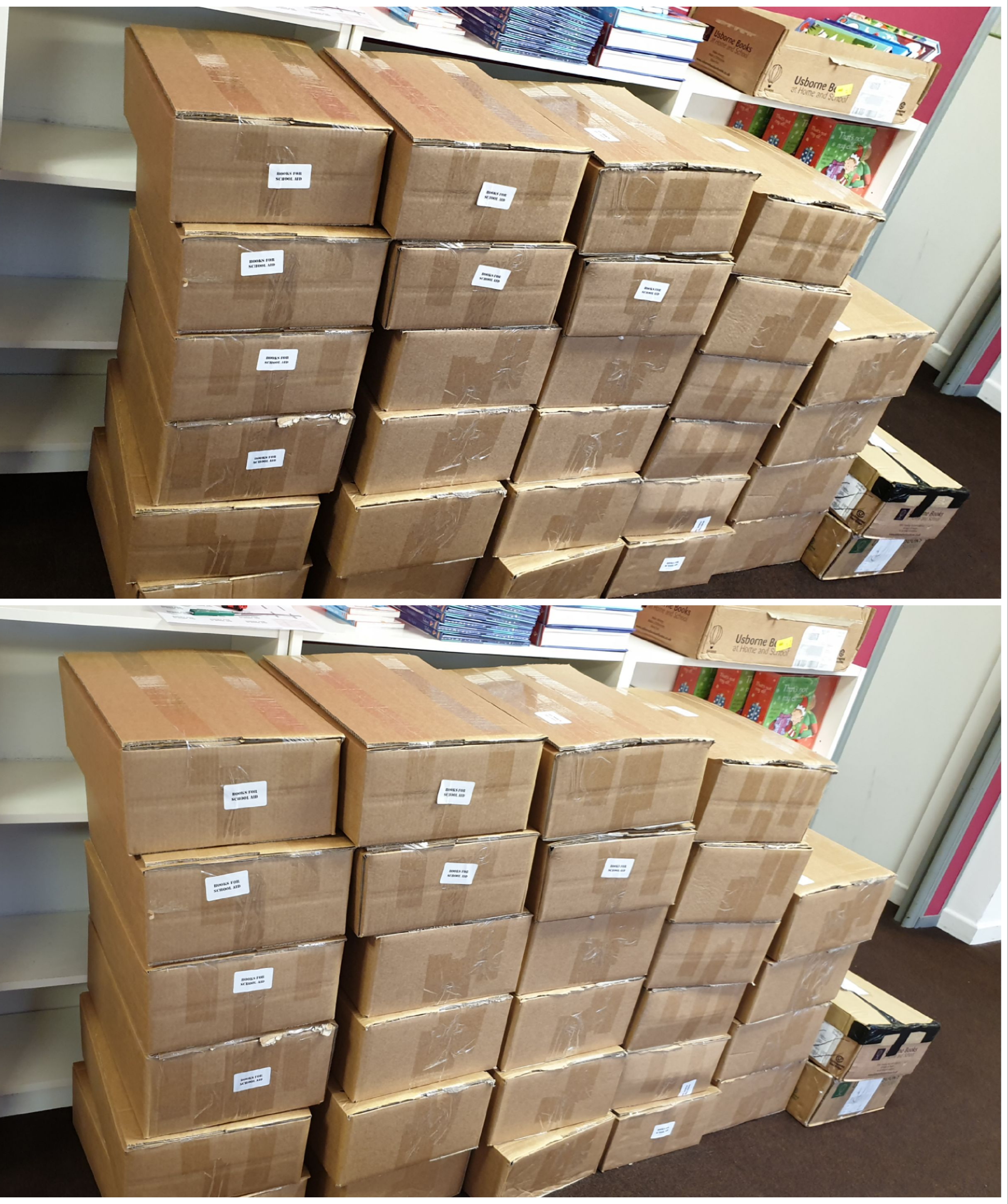 Usborne Books at Home has donated 42 boxes of books worth many hundreds of pounds to REACT